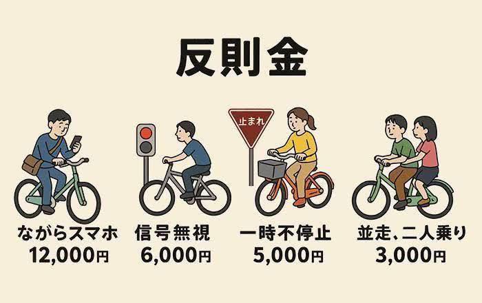 Vừa đạp xe vừa che ô hoặc đeo tai nghe → phạt 5,000 yên